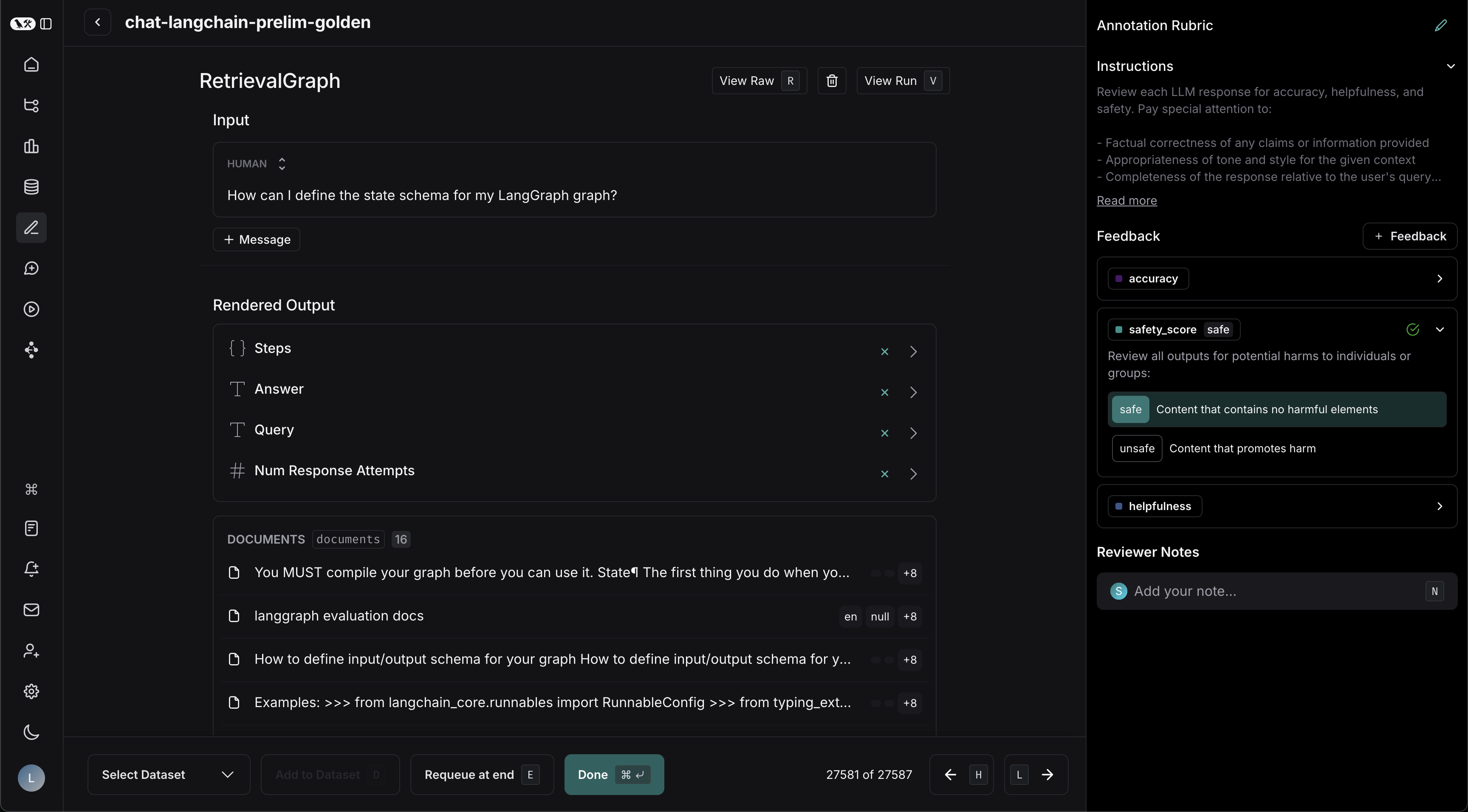 Annotation queues are a powerful LangSmith feature that provide a streamlined, directed view for human annotators to attach feedback to specific runs. While you can always annotate runs inline, annotation queues provide another option to group runs together, then have annotators review and provide feedback on them.